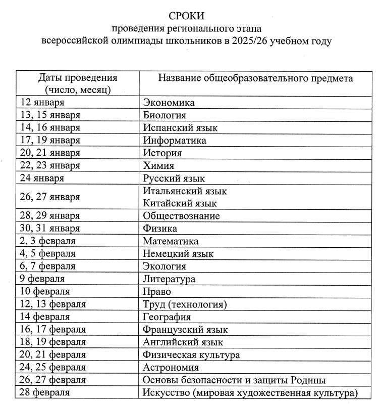 Приказ об установлении сроков и графика проведения регионального этапа всероссийской олимпиады школьников в 2025/2026 учебом году