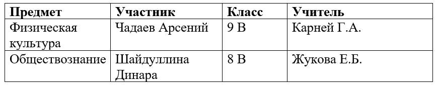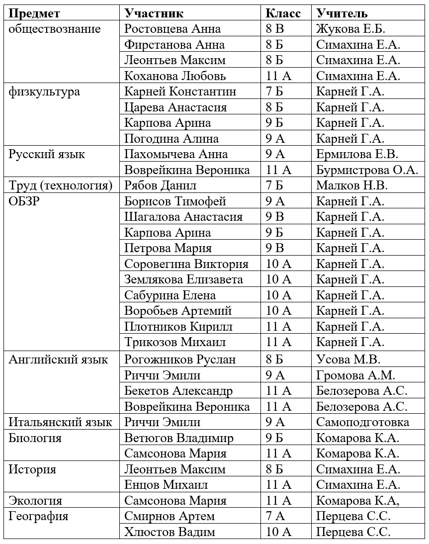 Призеры муниципального этапа всероссийской олимпиады школьников